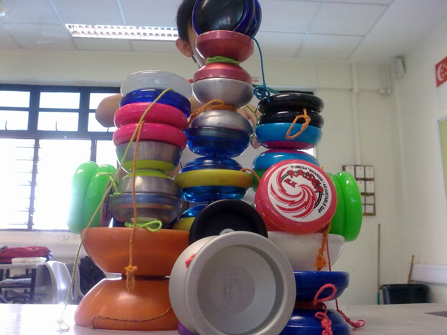 Tower of yoyos with mystery guest behind lol